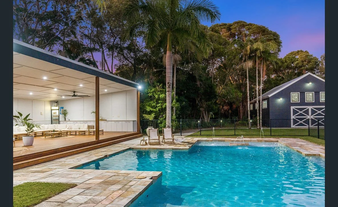 Amir Prestige are marketing a property that I would love to own if I won lotto. It’s the kind of property that you could picture inviting your friends and family over to enjoy a great weekend of hanging out and having fun. It’s a sprawling private acreage property with 8 bedrooms but the real selling point for me if I had a swag of lotto money would be the short 5 minute walk to the beach.